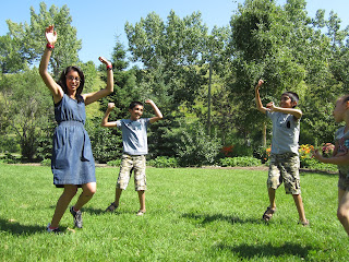 Once we thank Kalyn for her generosity of knowledge, we decide it's a good time to enjoy a snack of sliced cucumbers and grape tomatoes. Then we have a fallen apple collection race, and everyone returns with a ton of apples. Everyone is a winner when we tell them what we will be doing with the bounty of fruit. Apple butter will be on the menu at our harvest picnic!